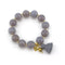 • Mala Armband mit Perlen aus vergoldetem 925er Sterlingsilber, facettiertem Achat (grau), Anhänger und Quaste
